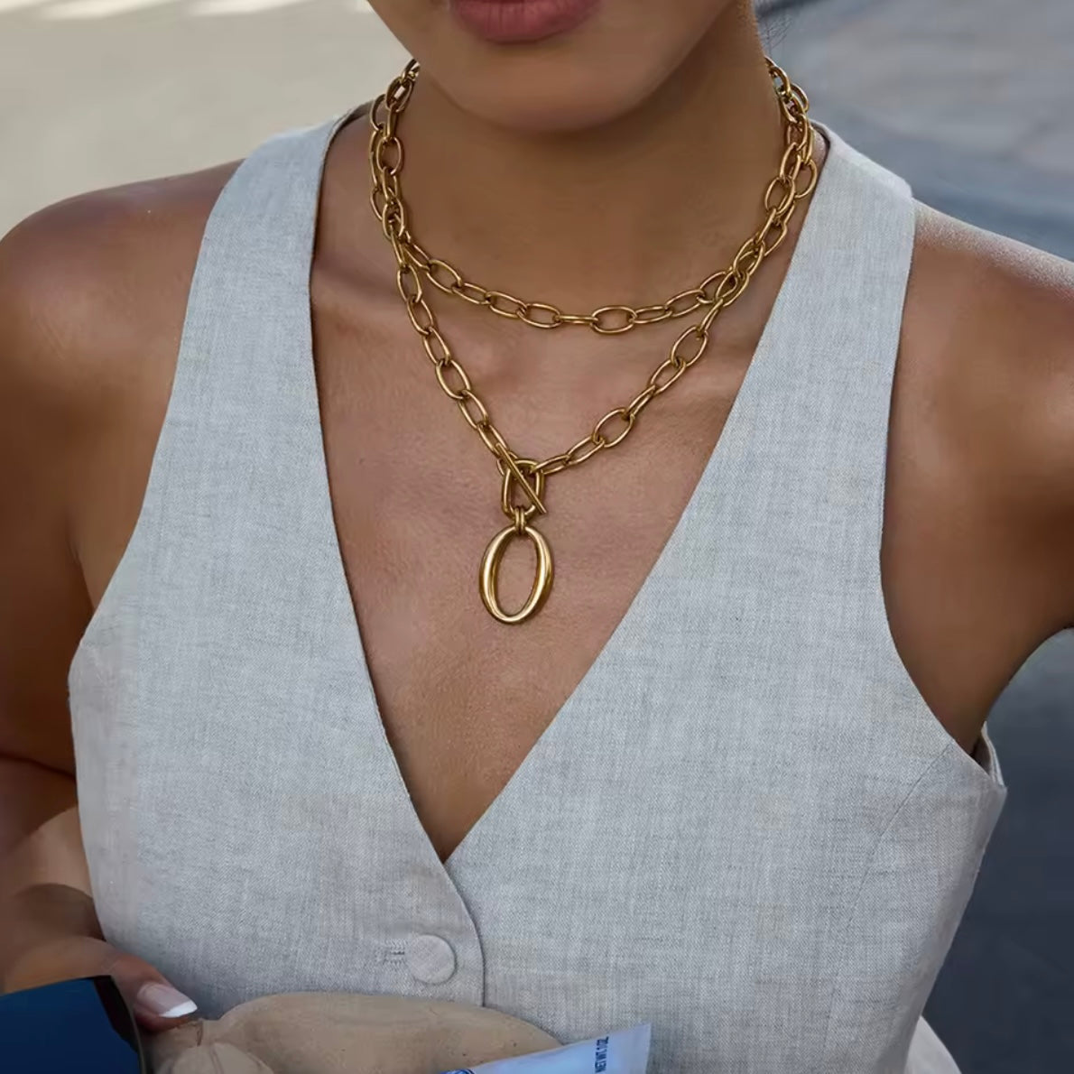- Ενιαία αλυσίδα με μήκος, για διπλό πέρασμα από τον λαιμό